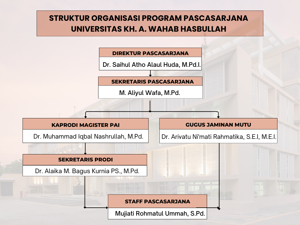 Struktural Pascasarjana Prof. Dr. Ir. H. Gatot Ciptadi, DESS, IPU., ASEAN Eng Rektor unwaha Dr. Saihul Atho Huda, M.Pd.I. direktur Hj. Hizbiyah Wahab, M.A. Ketua Umum YPT. Bahrul Ulum Struktural Organisasi Program Pascasarjana